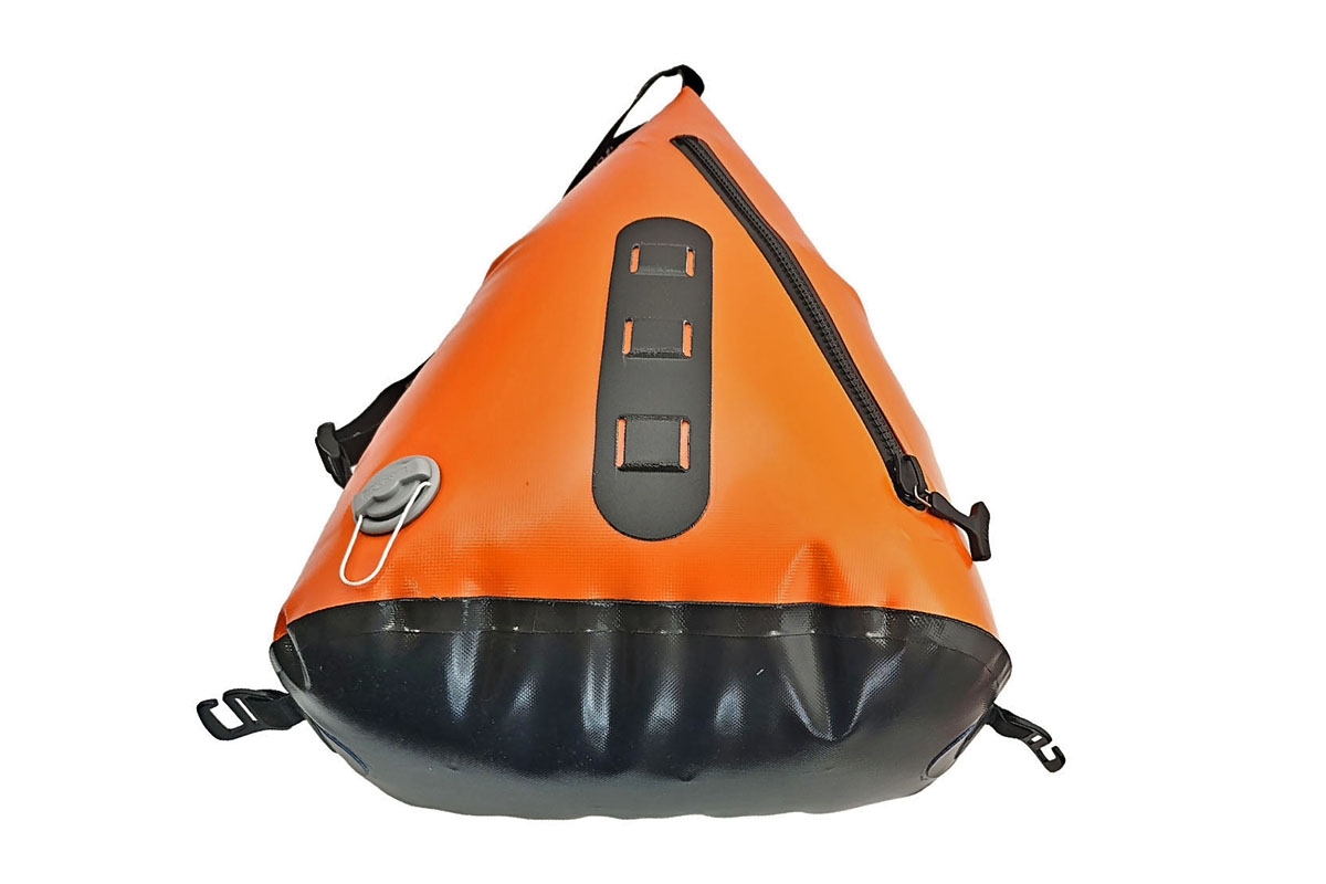 - Opěrka je designována též jako vak, který je možno vyjmout a používat mimo packraft.
